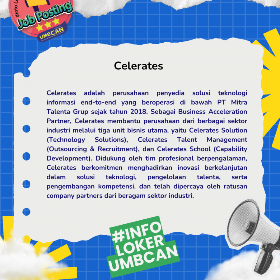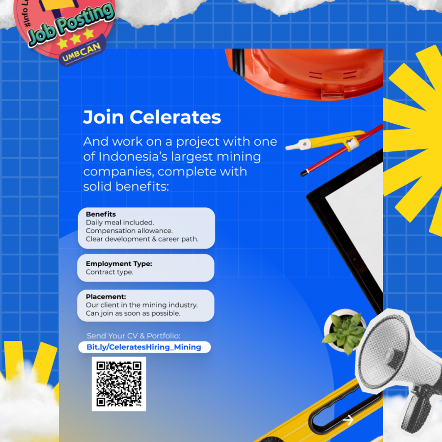 Segera siapkan CV terbaik kamu, serta kelengkapan melamar lainnya ke link Bit.ly/CeleratesHiring_Mining dan juga cc ke email [email protected]