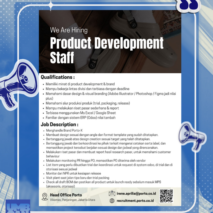 To apply for this job please visit recruitment.porto.co.id.